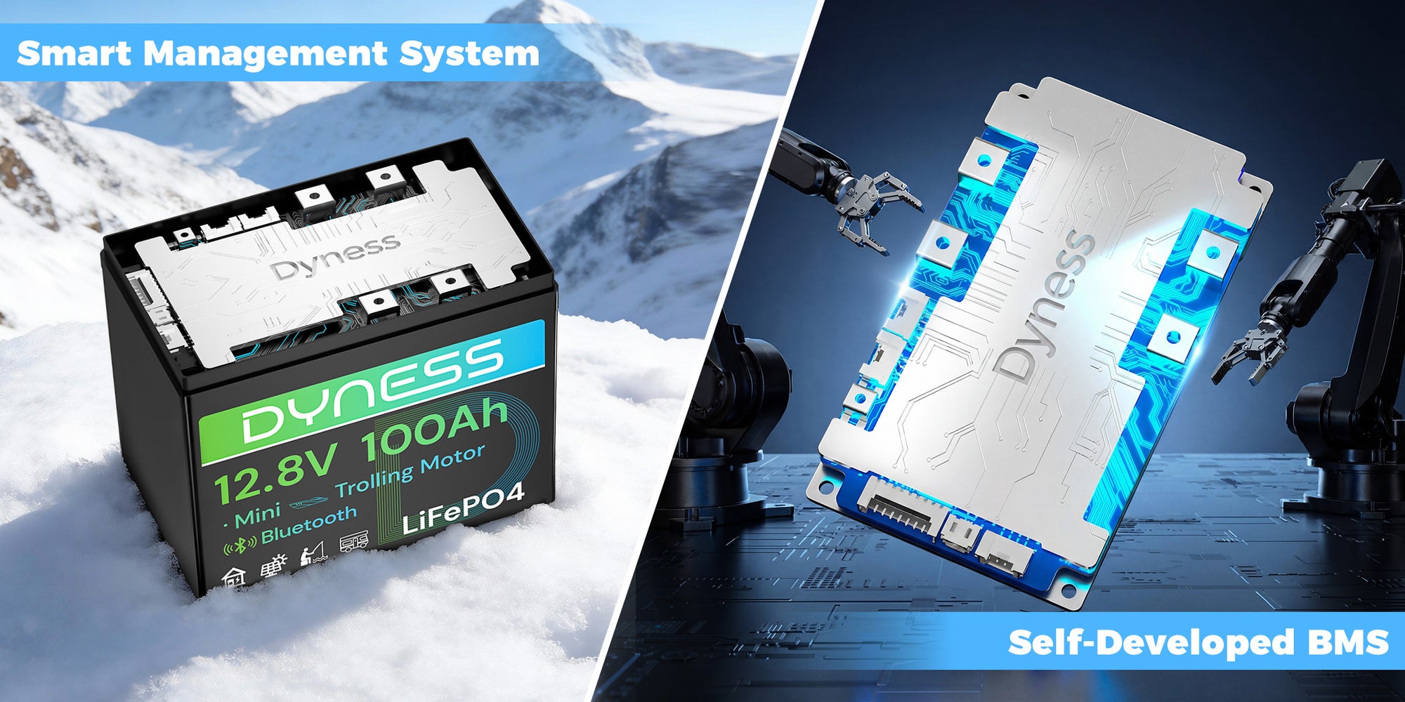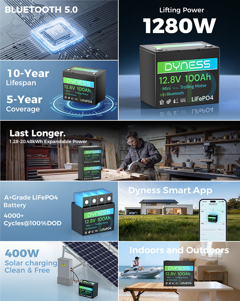 Dynesspower 12V 100Ah Group 24 Bluetooth-Enabled LiFePO4 Deep Cycle Battery