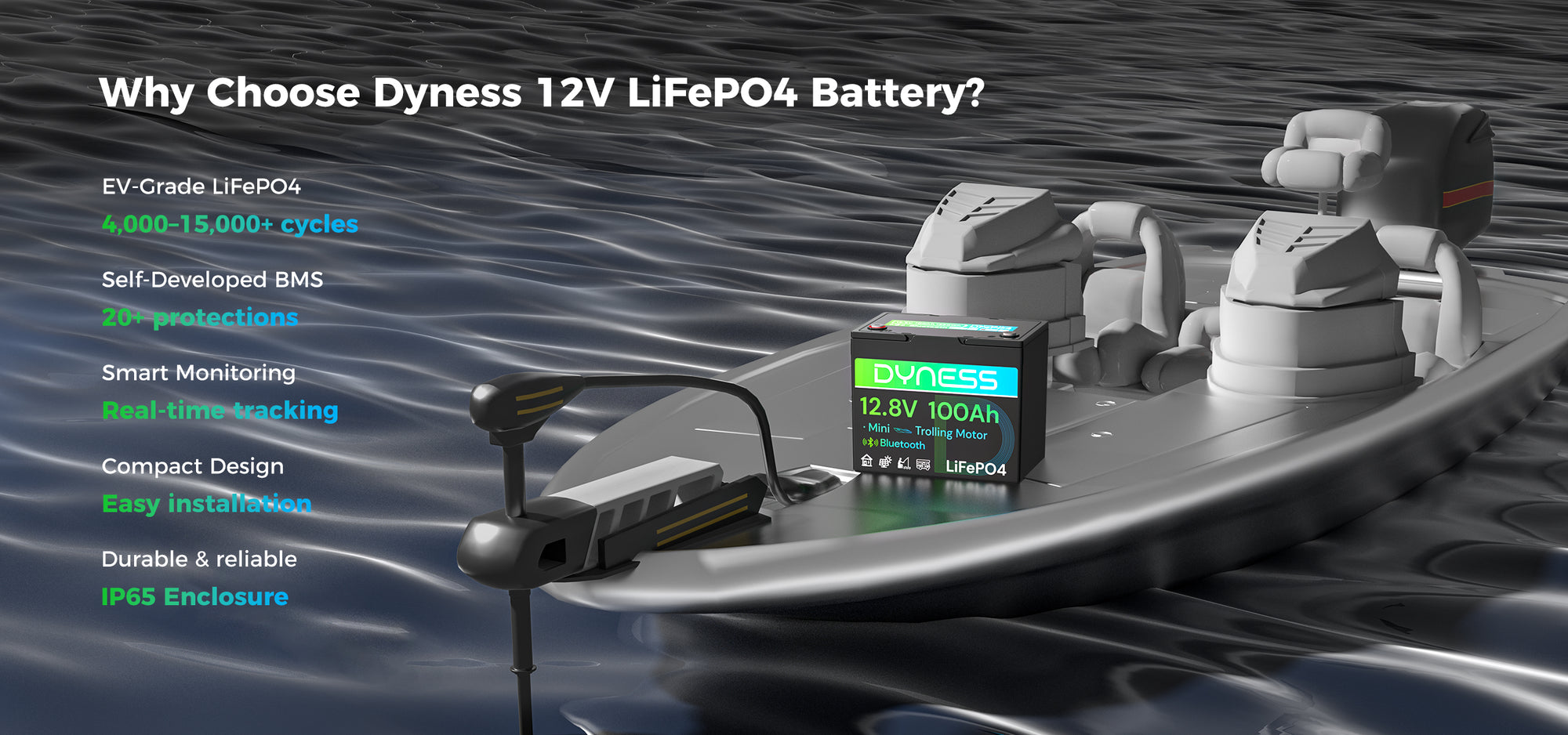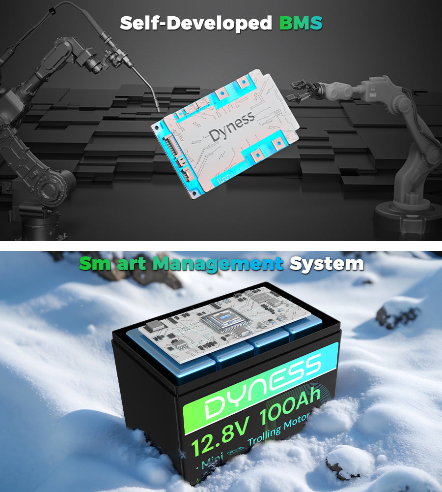 Dyness's self-developed smart BMS makes our battery the best lithium battery for trolling motors. Our smart BMS can protect the battery from 20+ risks, including overcharge, over-discharge, over-current, overheating, and short circuits protections, and has a better salt spray resistance to protect your battery further. Besides, it has an auto-recovery function after overload protection , so there is no need for user intervention.