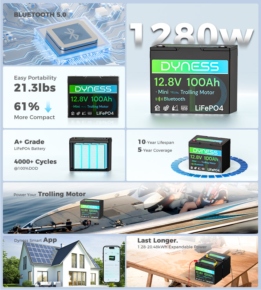 Dynesspower 12V 100Ah Group 24 Bluetooth-Enabled LiFePO4 Deep Cycle Battery