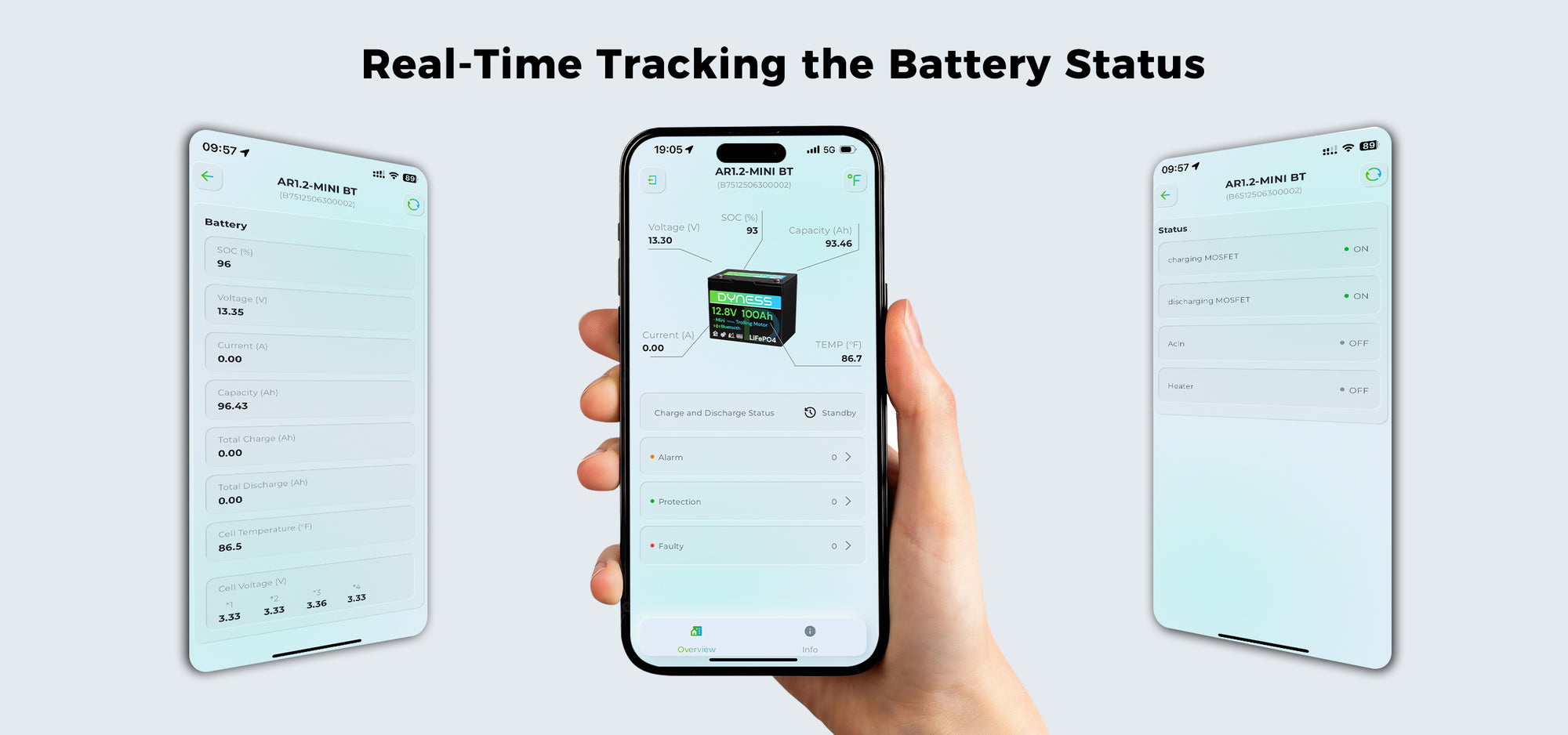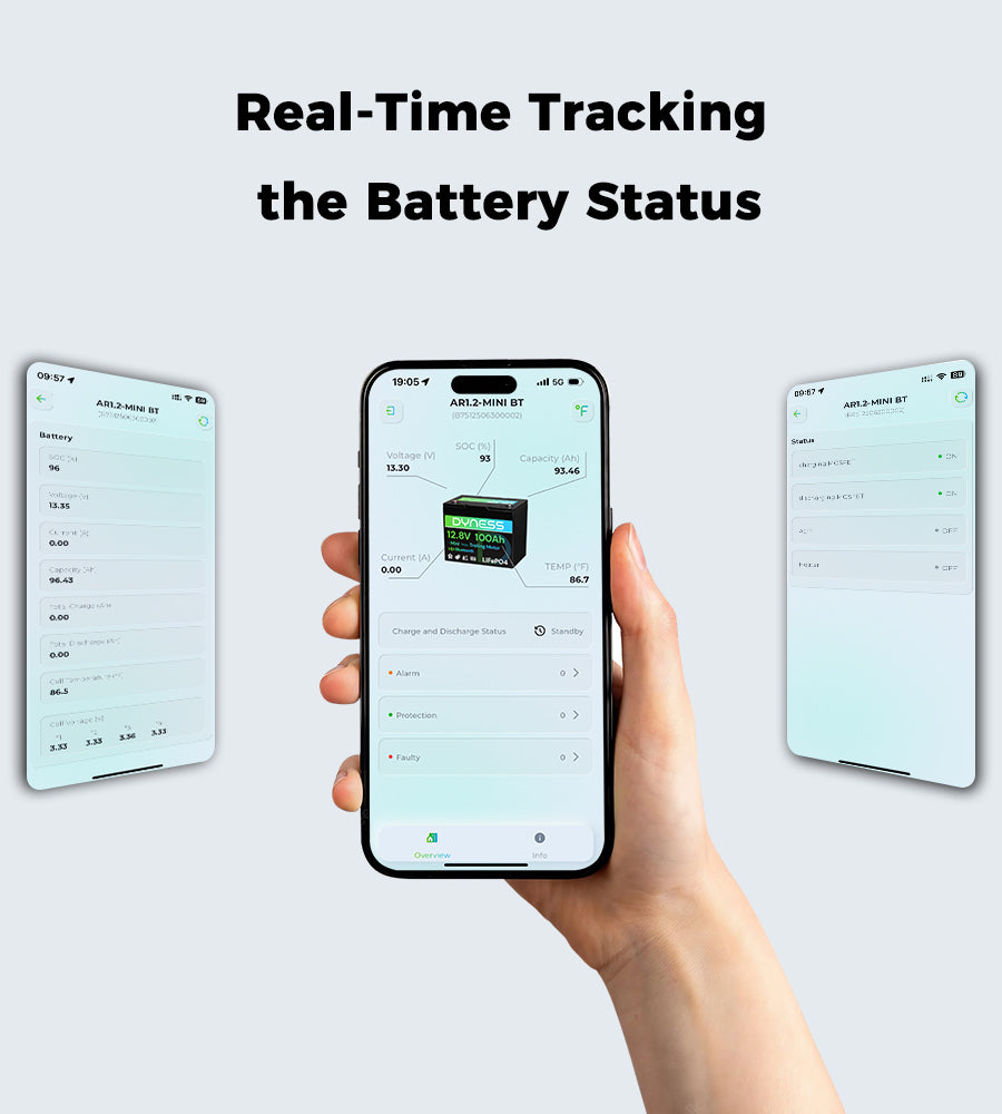 Dyness batteries come equipped with Bluetooth 5.0, seamlessly pairing with the Dyness app for real-time monitoring of SOC, charge/discharge data, voltage, current, remaining capacity, temperature, and cycle life. Simply scan the barcode to connect and manage your battery with ease.