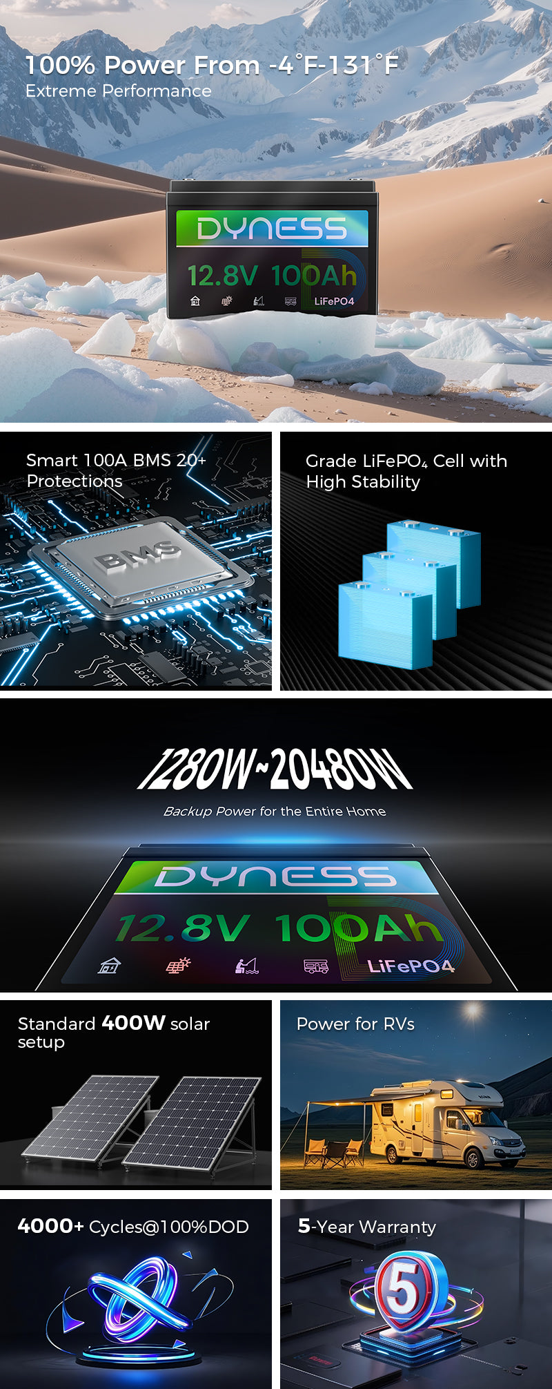 Dynesspower AR1.2 12V 100Ah LiFePO4 Battery
