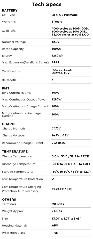 Built with 4000+ cycle LiFePO₄ cells, IP65-rated for dust and water resistance, wide temperature operation, advanced BMS protection, and backed by a 5-year worry-free warranty.